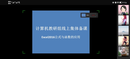 2022年5月18日,计算机教研室主任王照组织召开线上教学工作研讨会,会议主要内容是对第五章Excel2016中的公式与函数的应用进行了集体备课,计算机教研组全体成员参加会议。